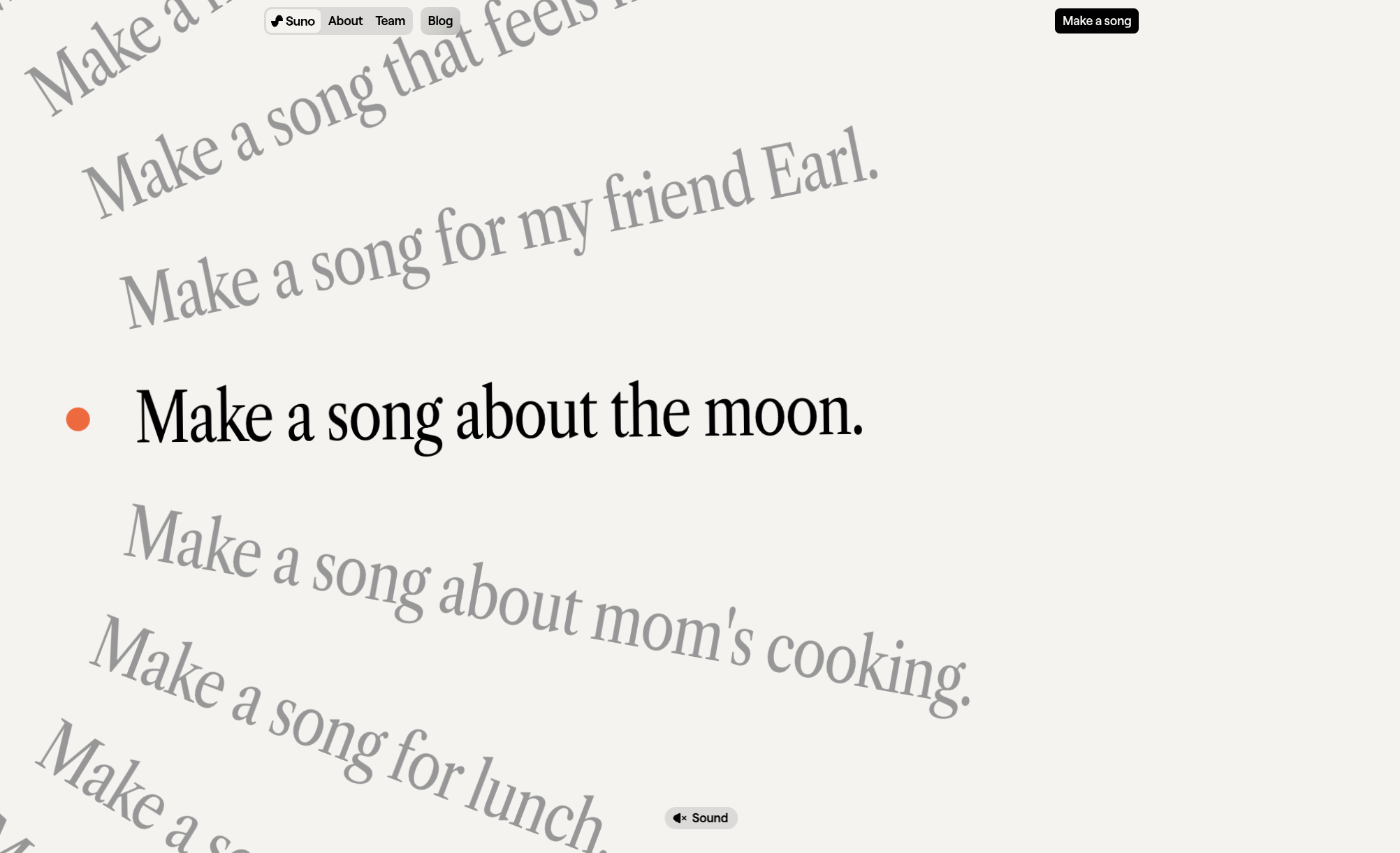 One of the first tools I stumbled upon is Suno AI. Immediately you’re greated with examples of AI-generated songs. One of my favorites is titled “Make a song about the moon.”
