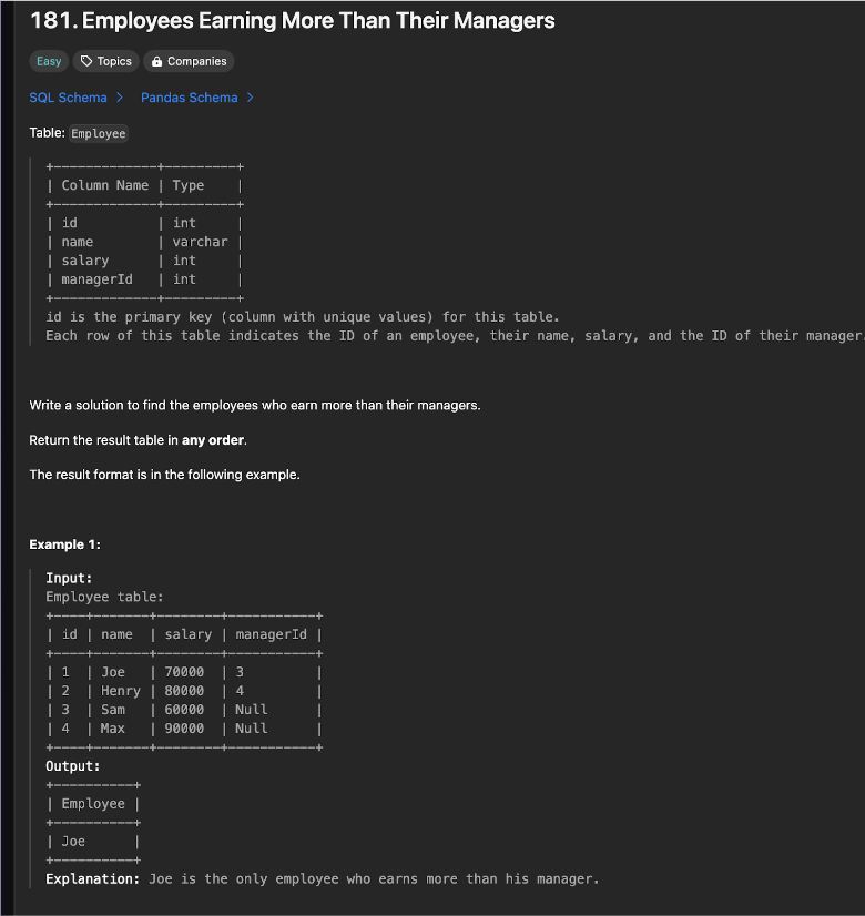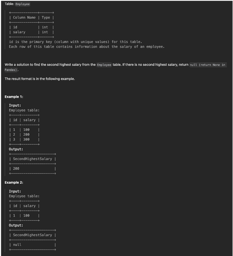 I first provided the model with an easy leetcode problem about databases.